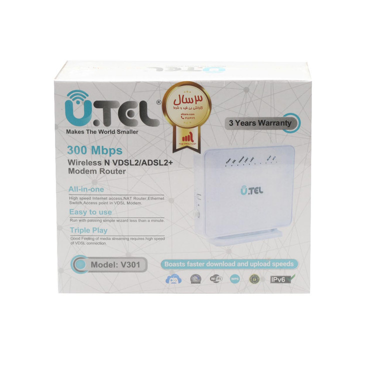 اقلام همراه: آداپتور تغذیه - کابل اترنت - کابل تلفن - یک اسپلیتر - دفترچه راهنما - گارانتی