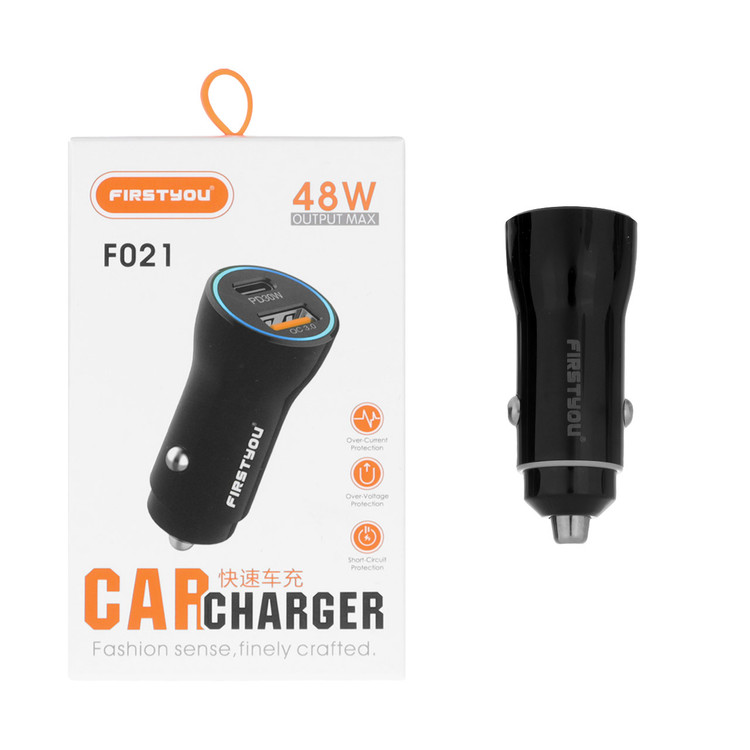 شارژر فندکی فست و PD دو پورت FIRSTYOU مدل F021 48W - مشکی