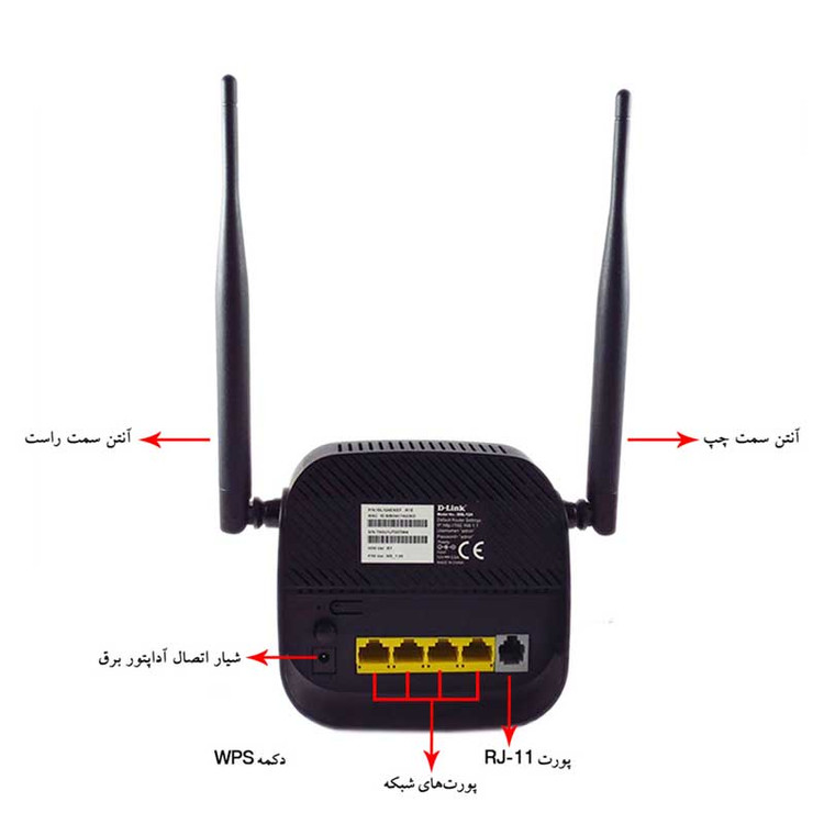 نشانگر LED : 5 عدد به ترتیب از چپ به راست Power ,Link ,Internet ,Lan ,WiFi